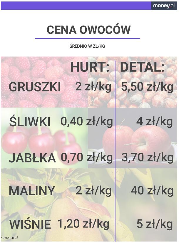 Niestety, niskie ceny w skupach nie mają odbicia w cenach na targowiskach czy sklepach. Konsument płaci nawet więcej niż rok temu. Rolnik dostaje znacznie mniej. Kasę zgarniają pośrednicy i przetwórcy. Nawet 60-80 proc. wartości owoców.