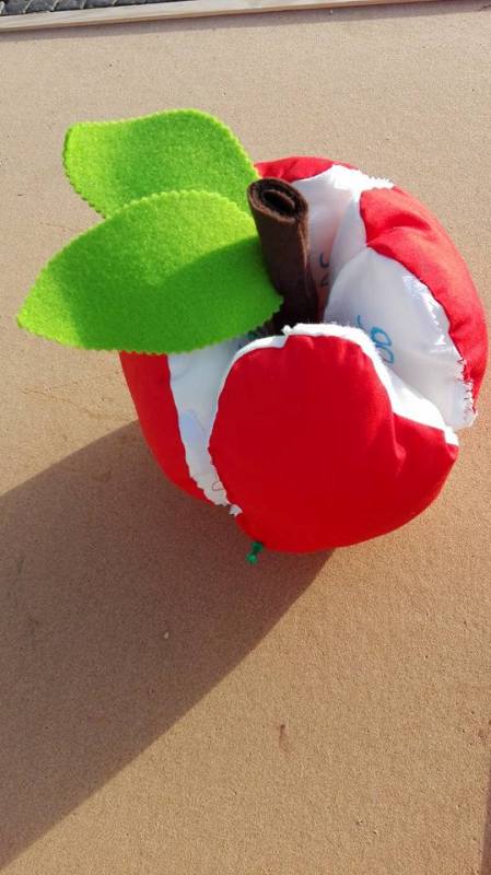 To piękne jabłko uszyła 6,5-letnia Lenka, laureatka I miejsca wśród dziewczynek. Jabłko kryje w sobie niespodziankę - po otwarciu możemy poznać caly zestaw witamin i minerałów, które kryje w sobie prawdziwy owoc.