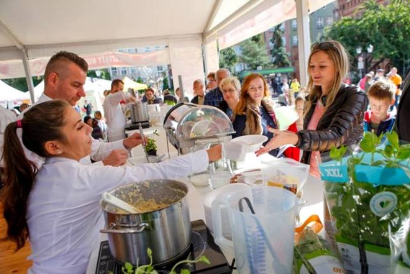 Katarzyna Cichopek jak co roku chętnie opowiedziała o roli jabłka na swoim stole. Podzieliła się z publicznością historiami z życia swojej rodziny. Następnie na scene wkroczył Tomasz Purol - laureat znanego programu kulinarnego Mater Chef, ze swoim pokazem kulinarnym. W tym roku zarówno pokaz jak i warsztaty kulinarne były nadzwyczaj urozmaicone. Tomasz Purol przygotował – cielęcinę z musem jabłkowym, pudrem z jabłka i kompresowanym jabłkiem oraz chłodnika jabłkowego z kluskami jeżynowymi i świeżym jabłkiem. Chętnych do degustacji nie brakowało.